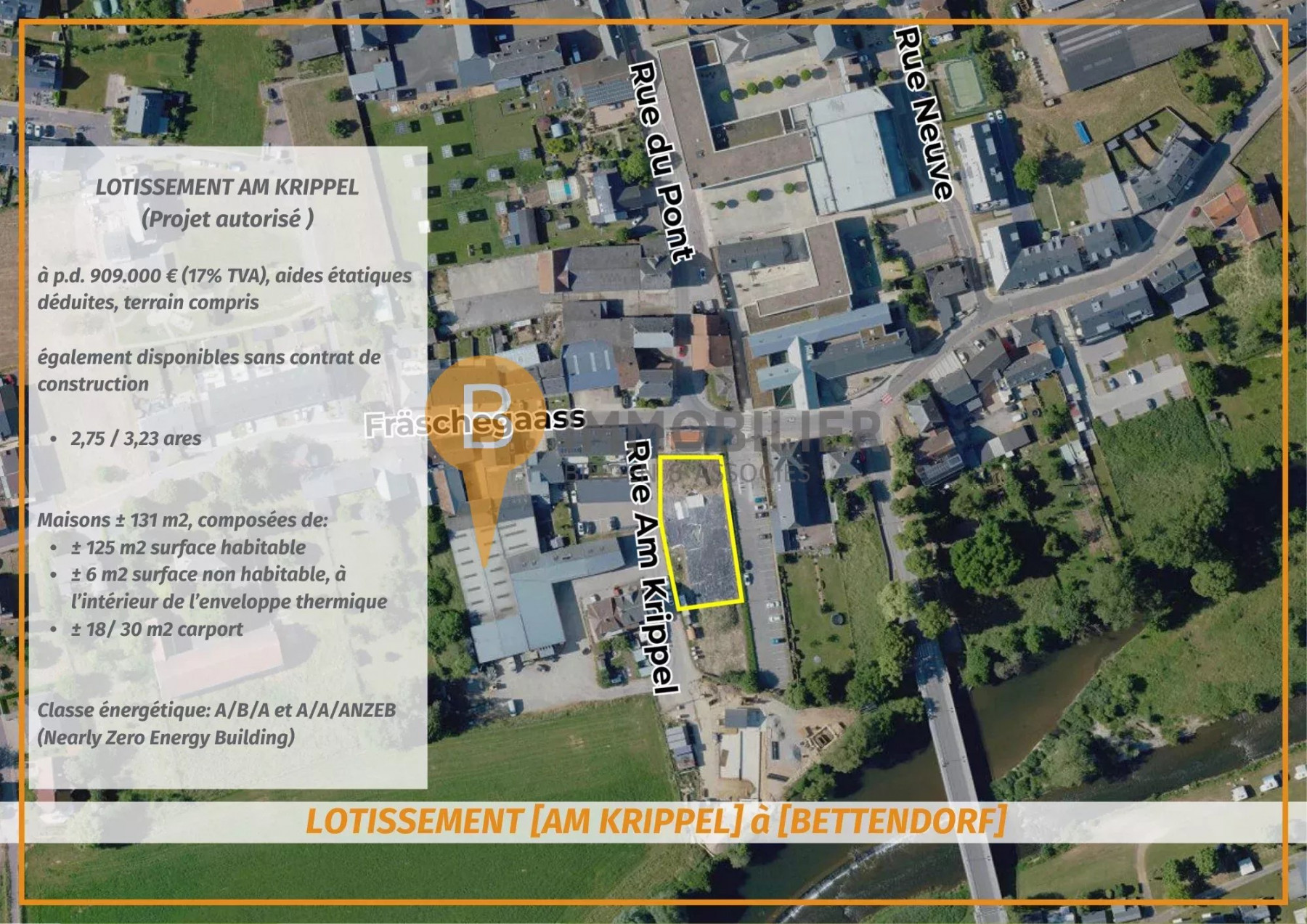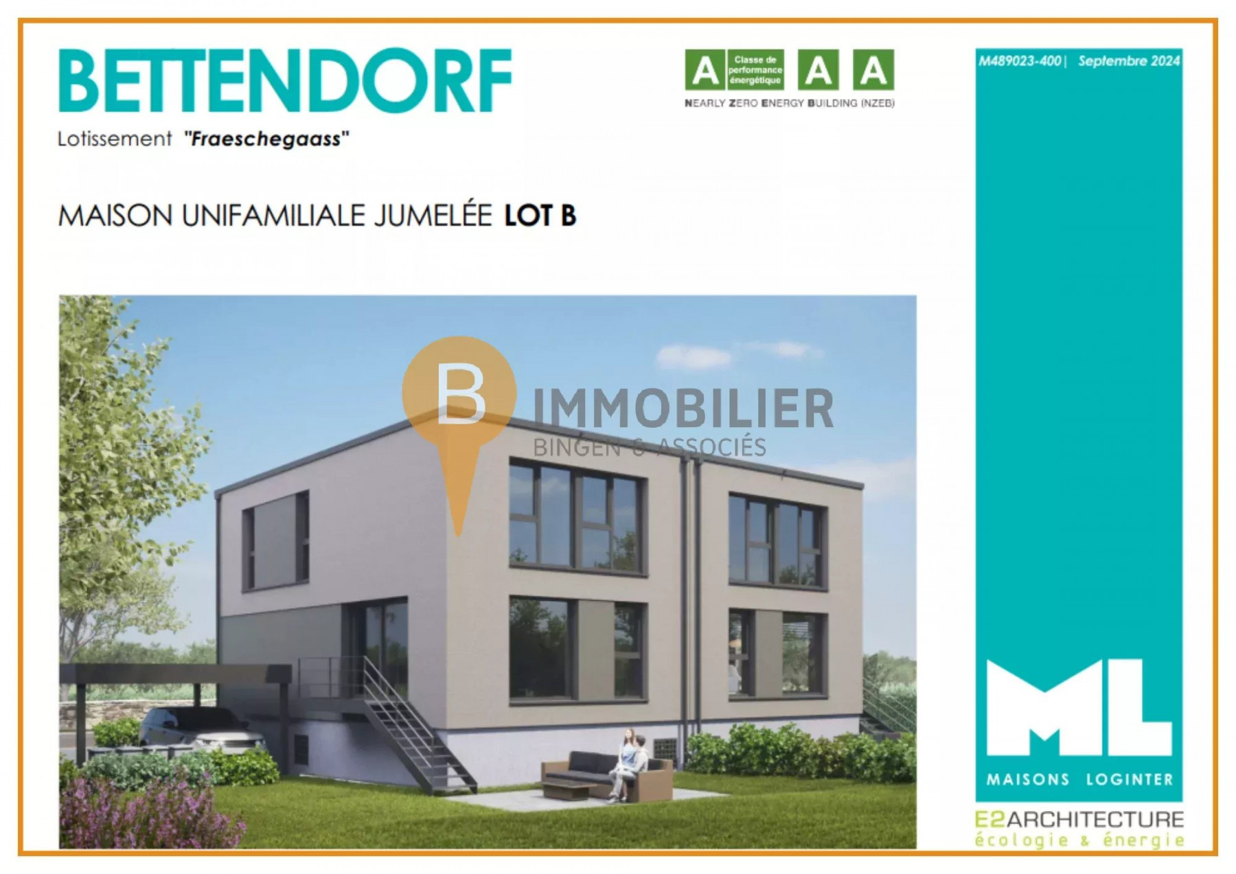 B IMMOBILIER, en collaboration avec Arend & Fischbach, promoteur luxembourgeois actif depuis plus de 30 ans, vous propose un nouveau lotissement résidentiel de standing situé dans un environnement calme et privilégié. Reconnue pour la qualité de ses constructions, la durabilité des matériaux utilisés et le respect des standards énergétiques les plus exigeants, la société Arend & Fischbach a développé au fil des années plusieurs milliers de logements au Luxembourg. Elle offre ainsi à ses acquéreurs un investissement fiable, durable et sécurisé.
