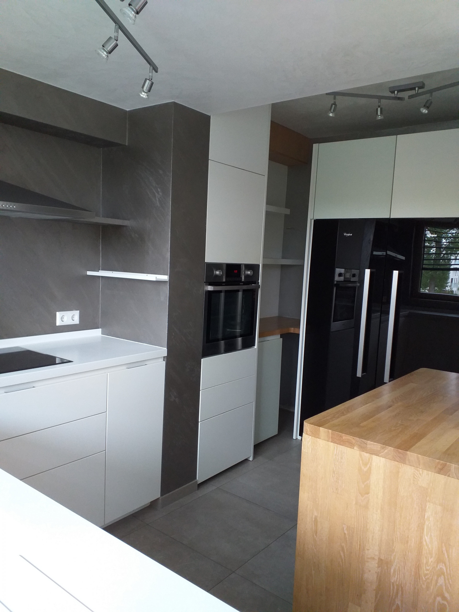 rez-de-chaussée : hall d'entrée avec dressing, WC séparé, séjour/salle à manger et cuisine équipée ouverte sur le séjour