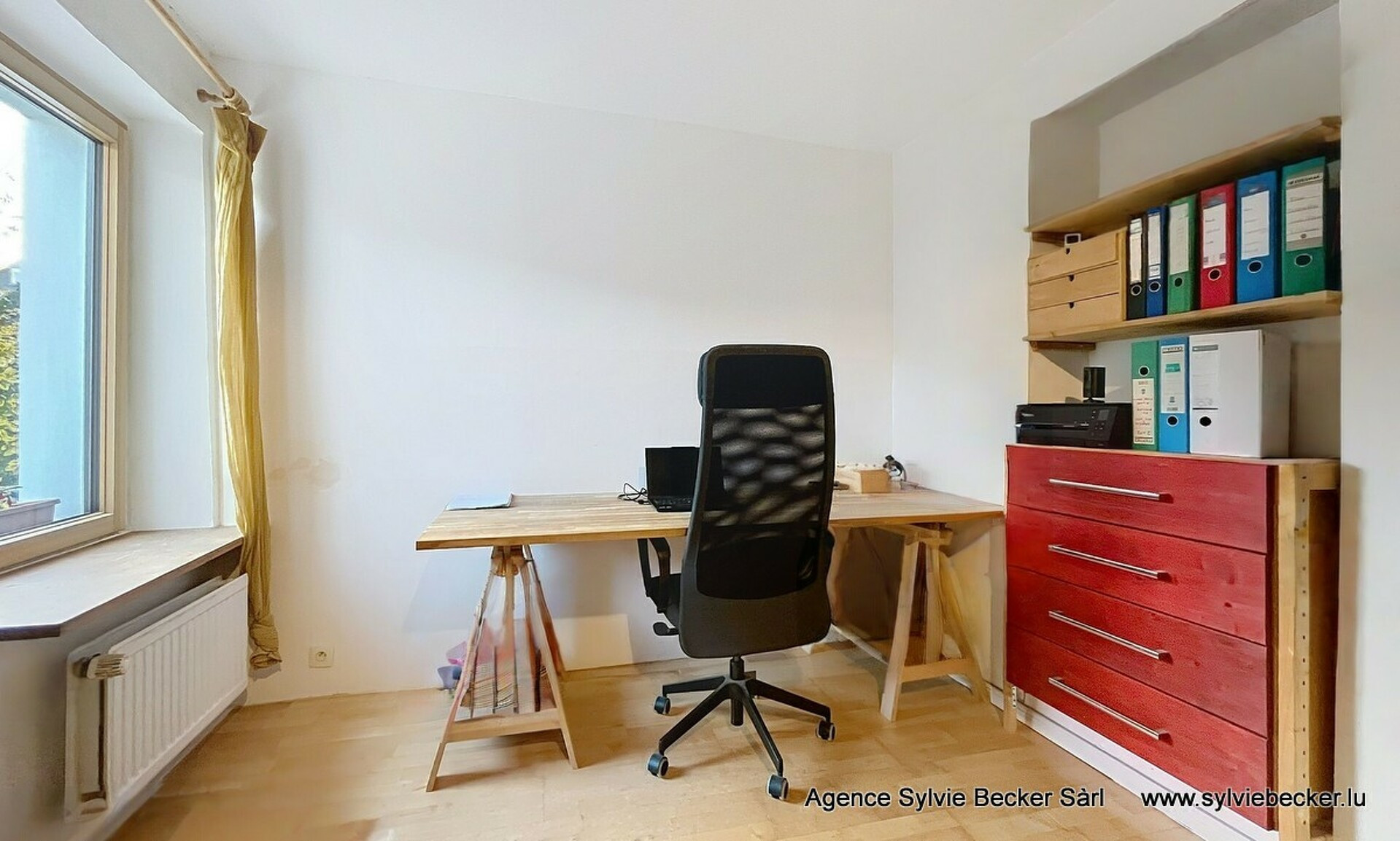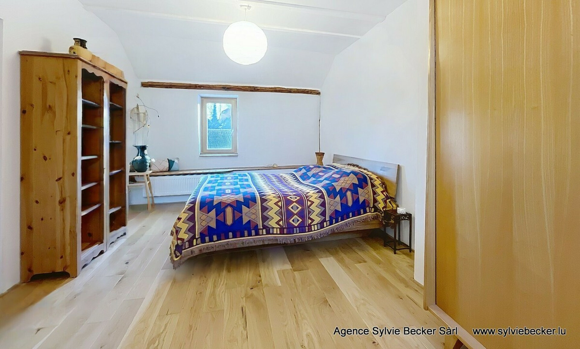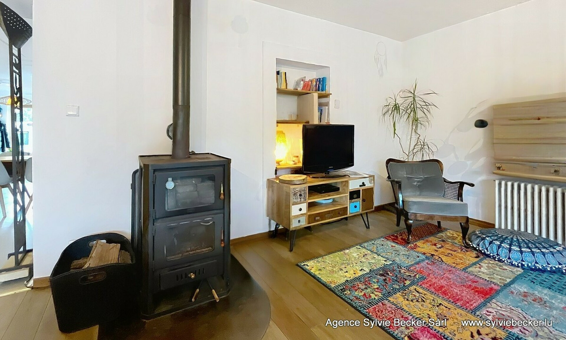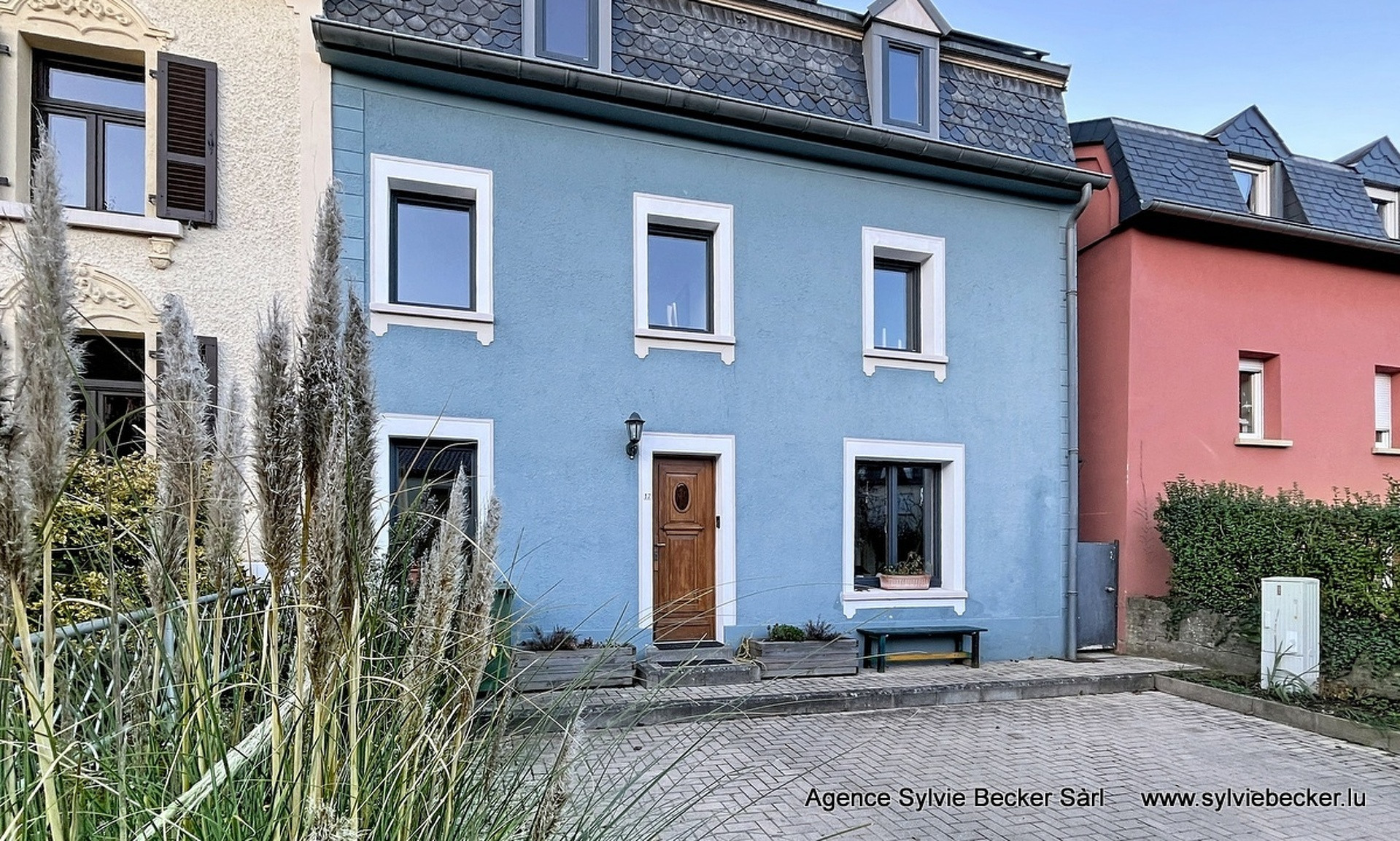 Maison de charme , mitoyenne, de 3 à 4 chambres à coucher, living avec cheminée donnant sur un beau jardin, située 17, rue Paul Eyschen, Müllendorf (commune de Steinsel). Cette maison atypique avec 2 emplacement extérieurs se situe à 20 minutes du Kirchberg et du Centre-ville de Luxembourg et à 15 minutes de Mersch et Mamer/Capellen.