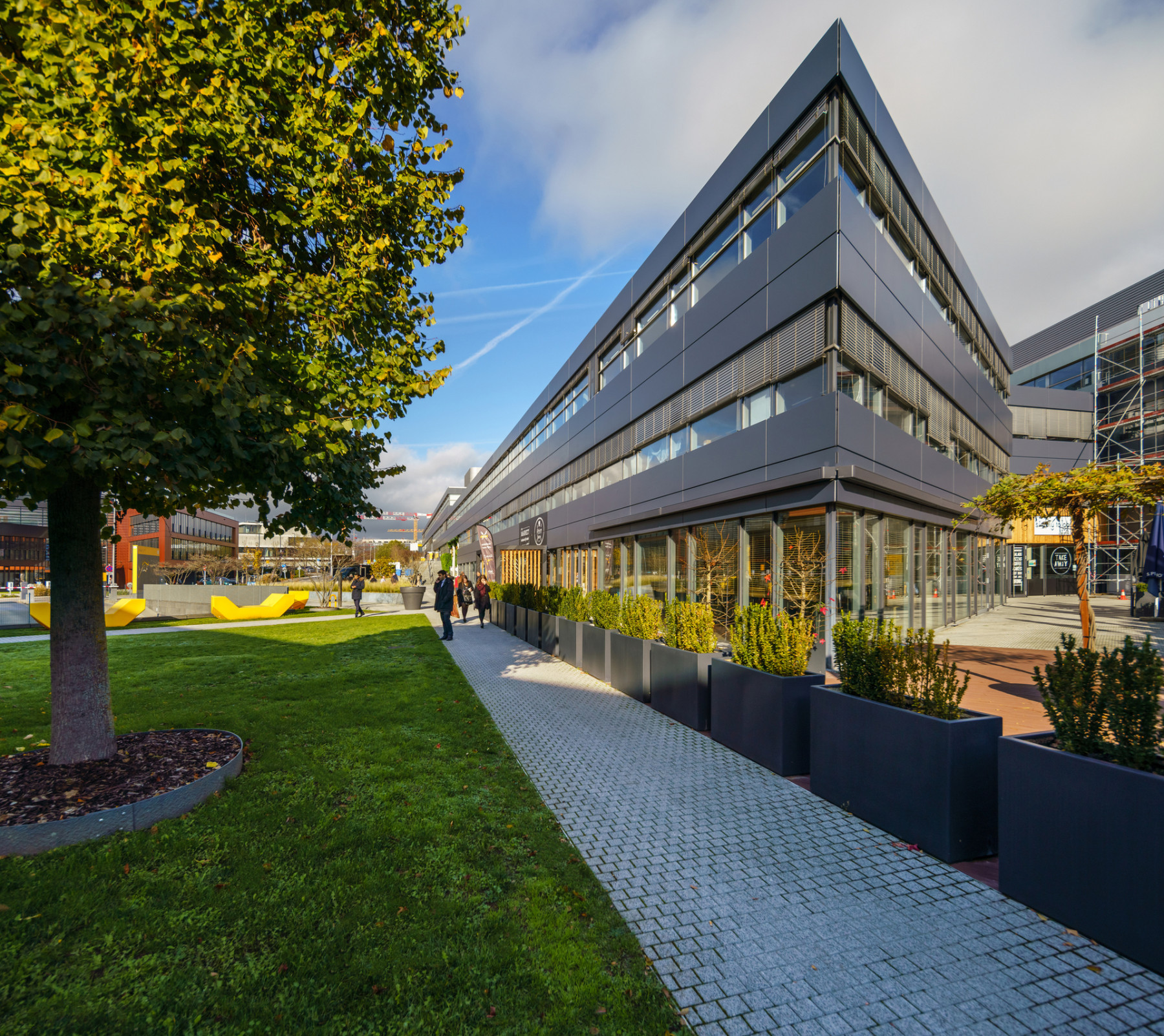 Among the several services available in the complex, the occupants will find a restaurant, a brasserie and a snack-shop. A children day care center and a concierge service are also available.