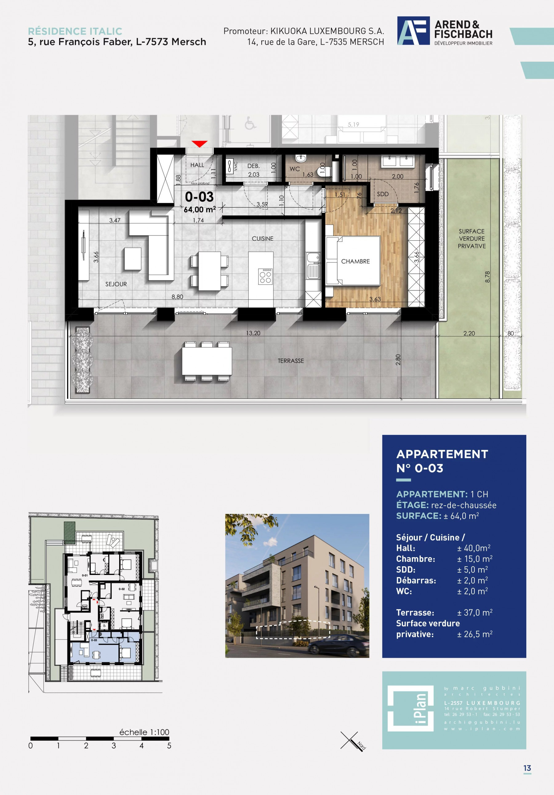 The "ITALIC" residence is located in Mersch, 5, rue François Faber in the new "Rue des Prés" housing estate. It will be built on a plot of ca. 7.29 ares.