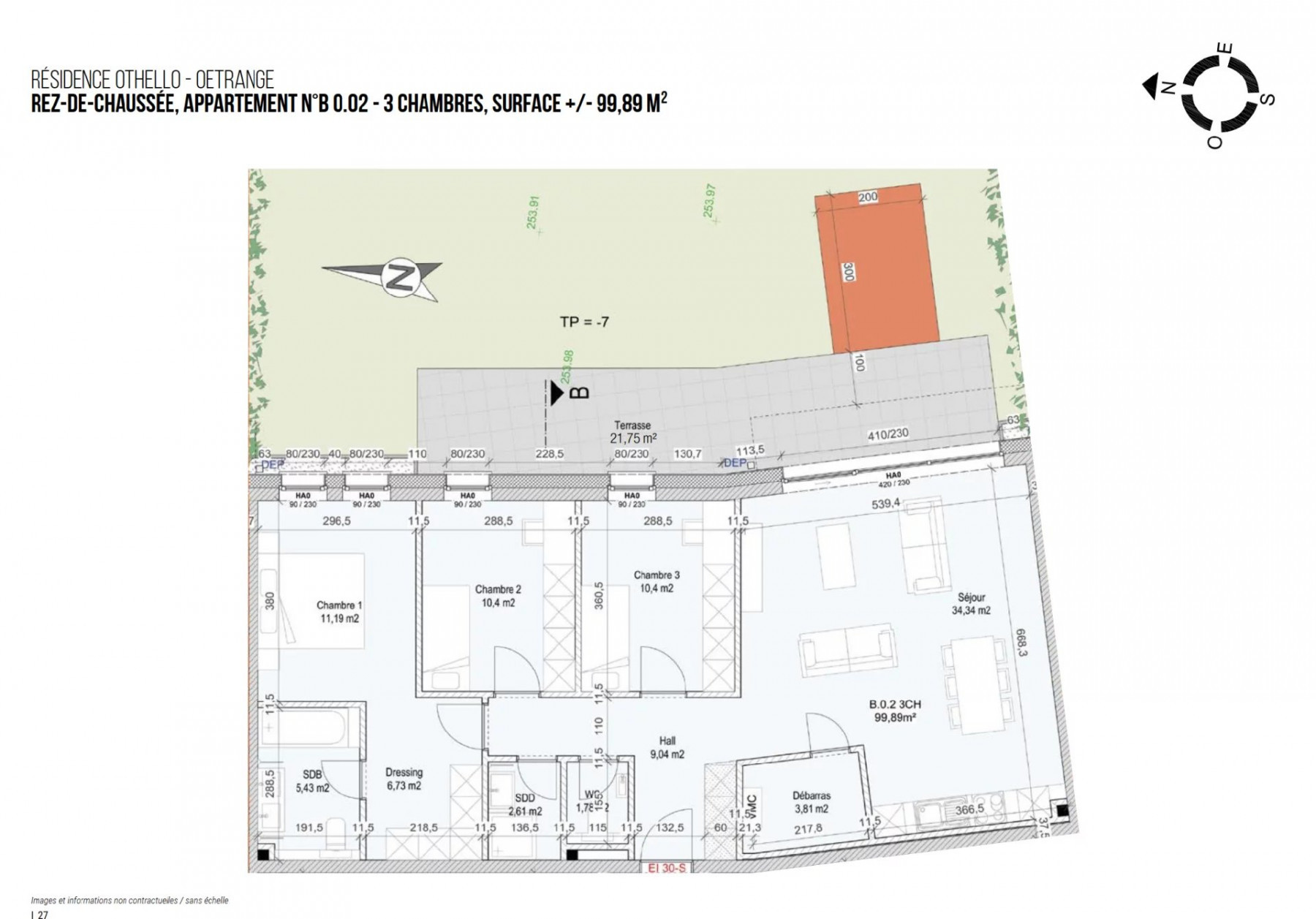 Espace immo vous présente cet appartement 3 chambres, dans la résidence Othello à Oetrange,