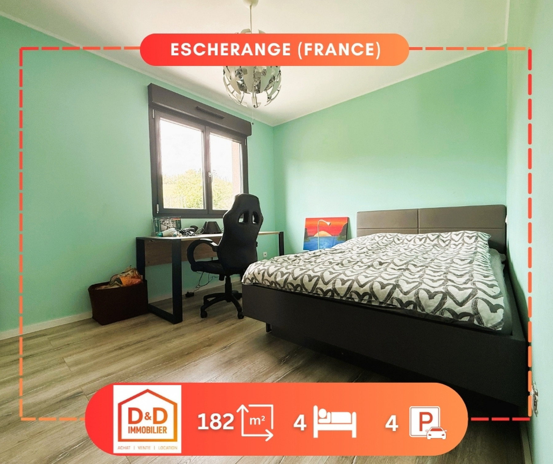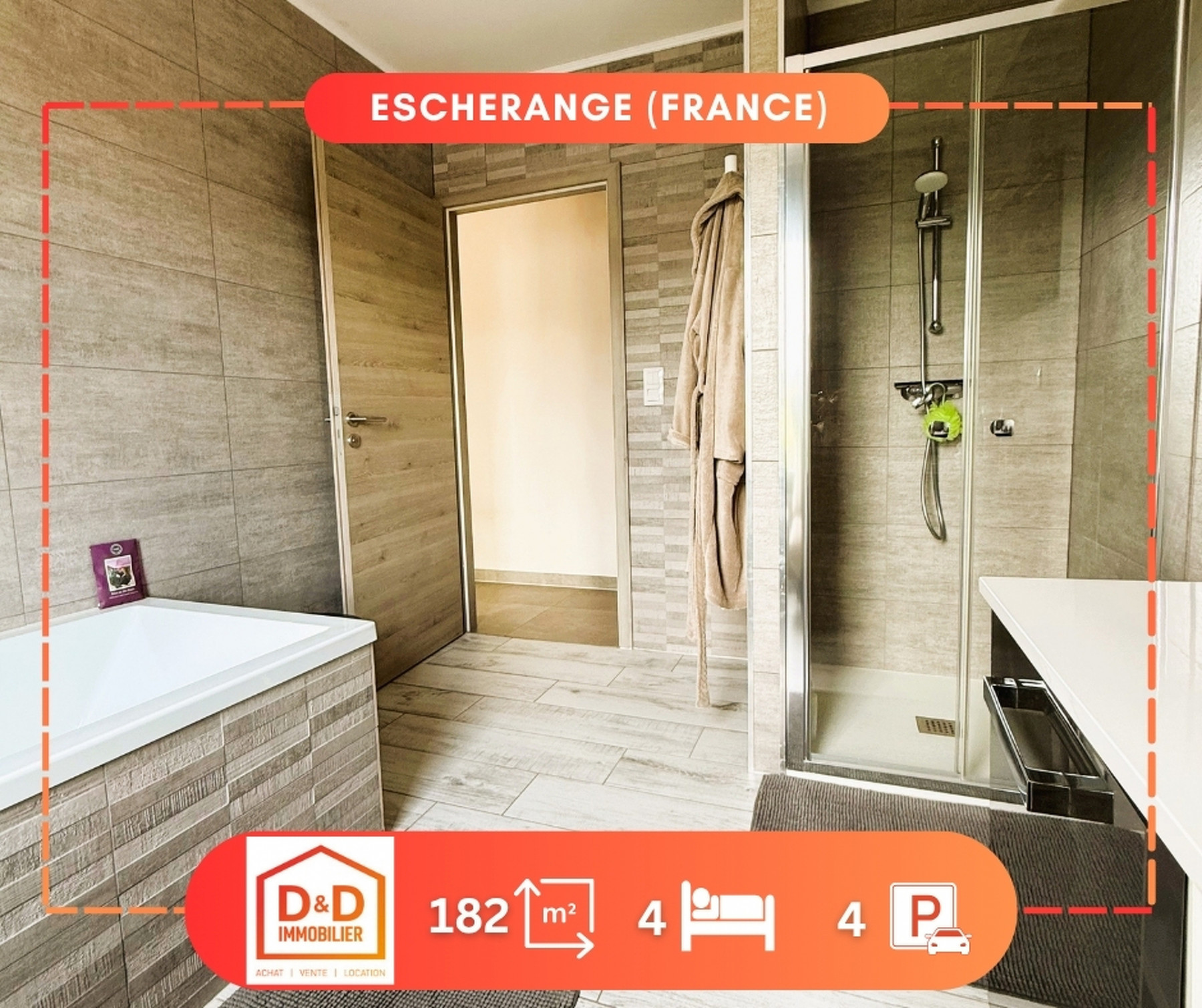 Discover this magnificent house located in Escherange, France, just a few minutes from the Luxembourg border. With 182 m² of living space on two levels and a 4 ares garden to the rear, it offers a spacious, green living environment, ideal for a family.