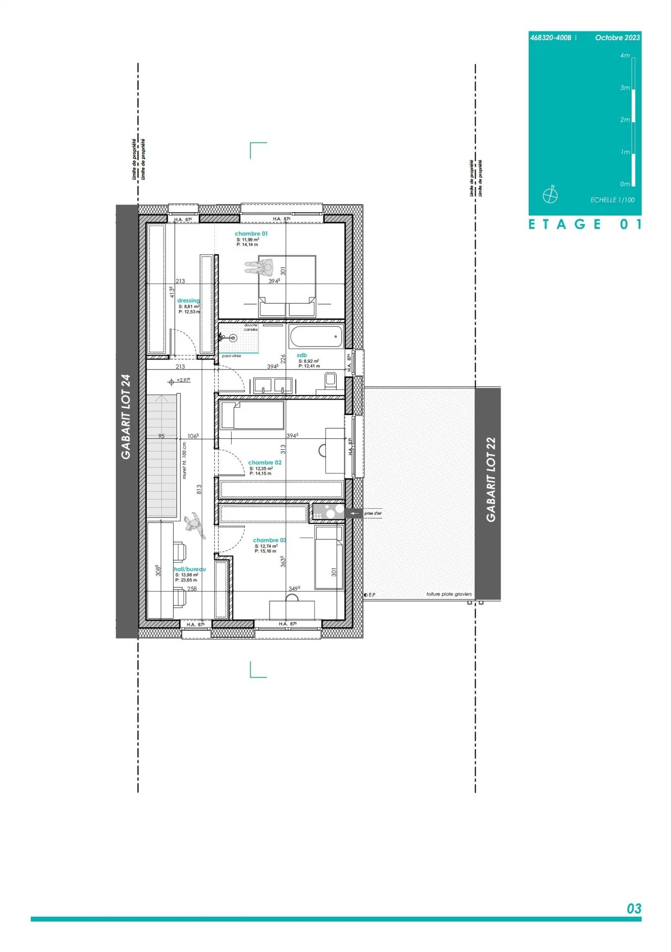 +++ LOT 23: maison unifamiliale jumelée sur un terrain de 2.84 ares avec une surface habitable de +/- 140 m2 et une surface totale de +/-170m2 comprenant: