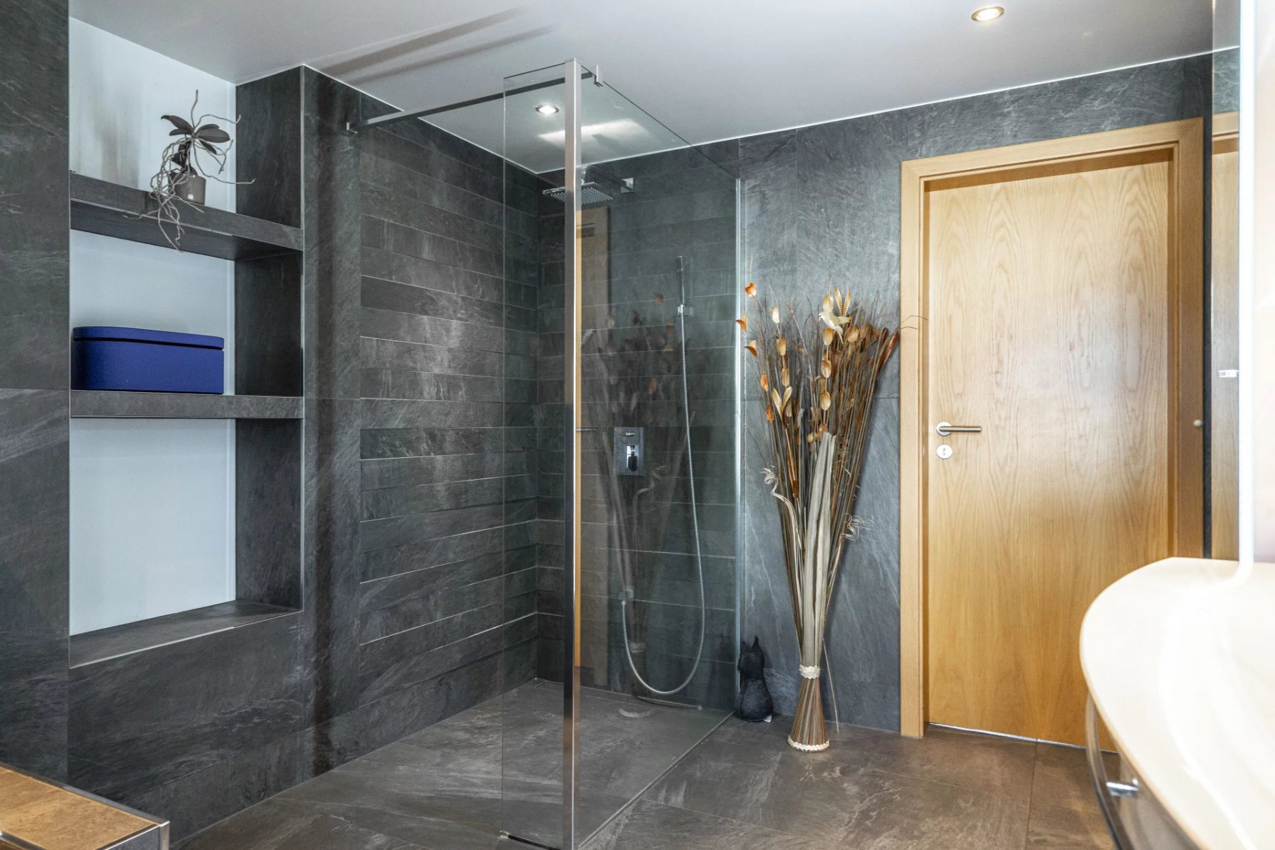 L’étage supérieur, entièrement aménagé en suite parentale, occupe toute la mezzanine et offre un véritable espace de détente et d’intimité. Une préinstallation technique permet d’y créer une troisième salle de bains, transformant cet étage en une suite haut de gamme complète.