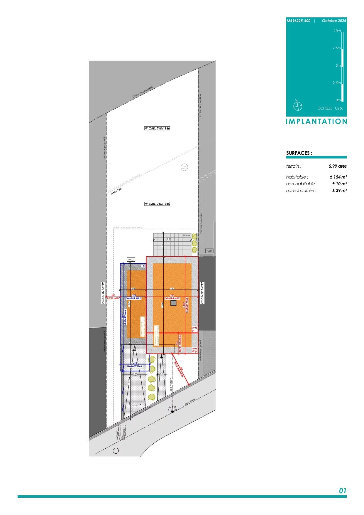 LOT 18: maison unifamiliale jumelée / garage sur un terrain de 5.99 ares avec une surface habitable de +/- 154 m2 et une surface totale de +/-203m2 comprenant:
