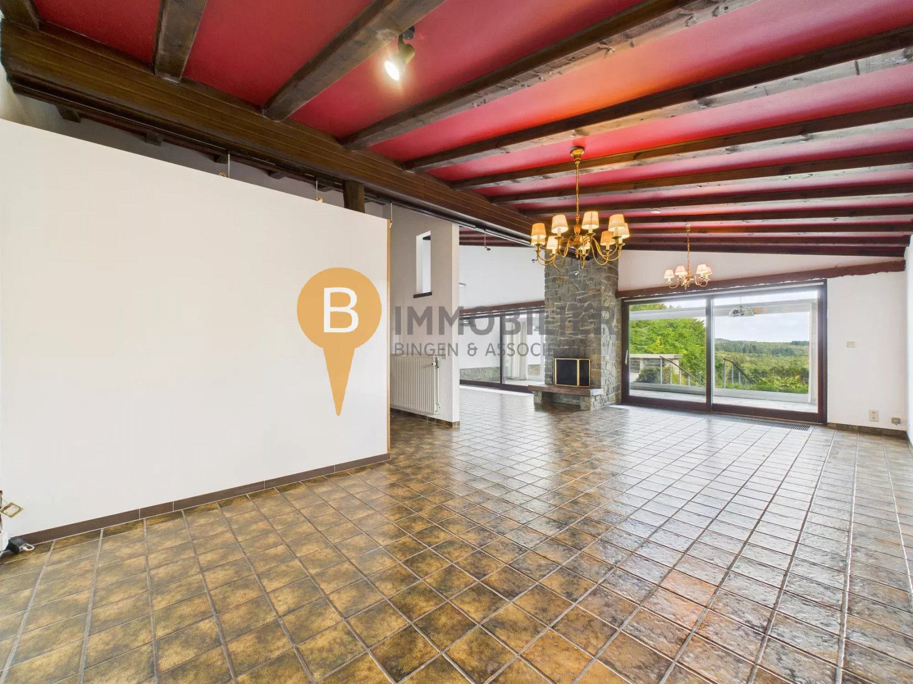 - Séjour/salle à manger lumineux avec cheminée en pierre, accès direct à la véranda vitrée