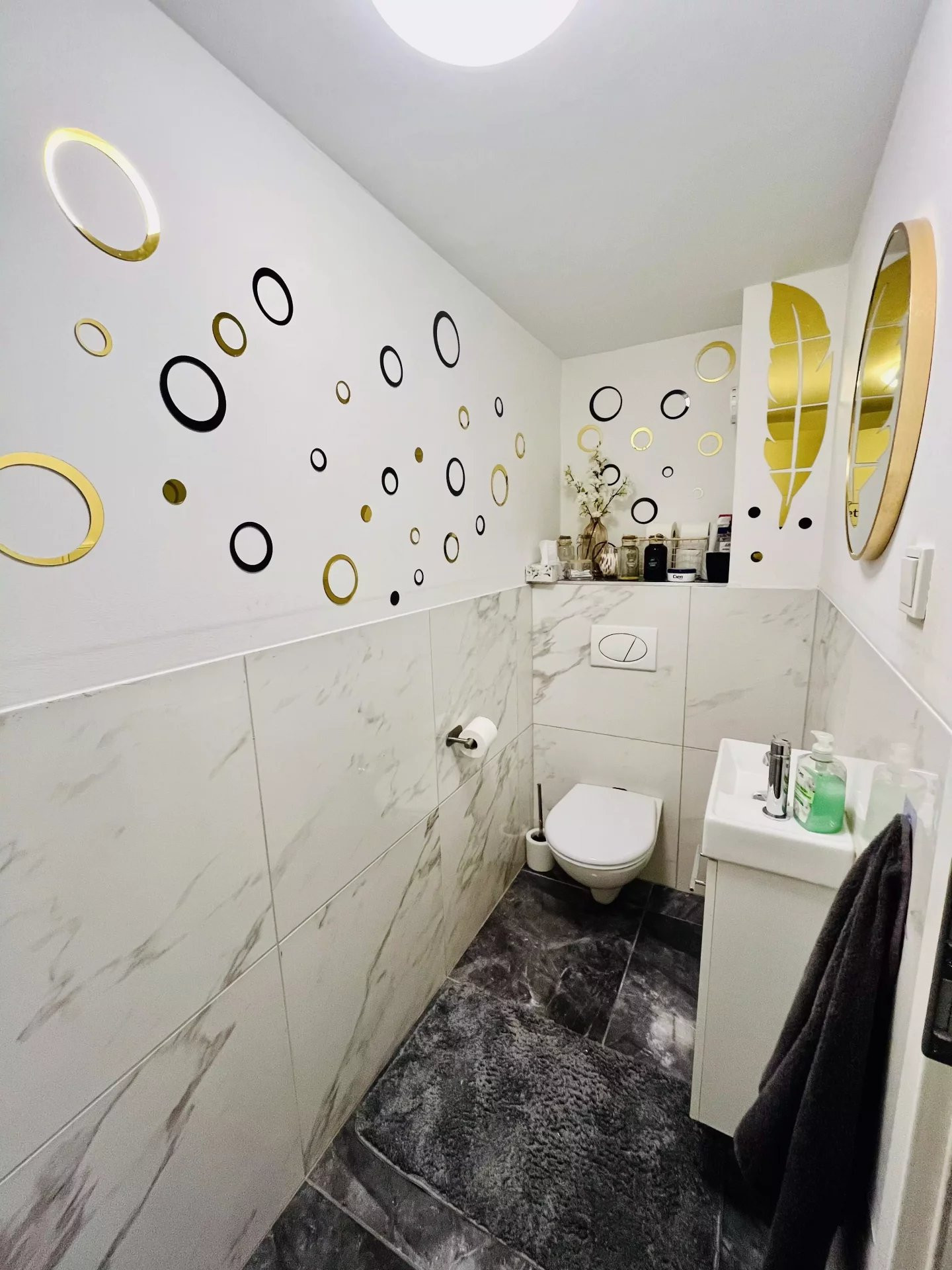 Au rez-de-chaussée, vous trouverez un beau salon, une cuisine moderne entièrement équipée, La salle à manger, baignée de lumière naturelle, est l'endroit idéal pour partager des repas en famille ou entre amis. Un coin rangement pratique, un WC, ainsi qu'un hall d'entrée accueillant complètent ce niveau.