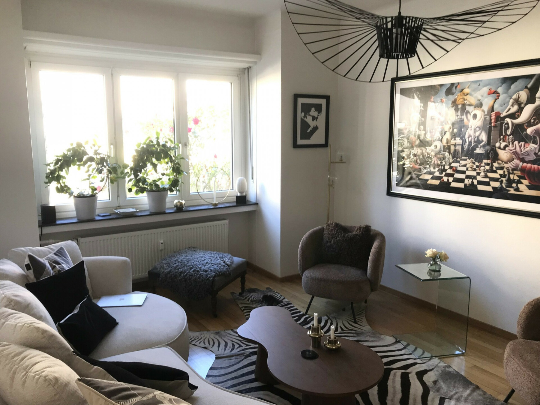 Cet appartement se caractérise par le charme du côté ancien modernisé. Situé dans un immeuble rénové des années 1930 à 3 parties, il comprend sur une surface de ± 60 m²