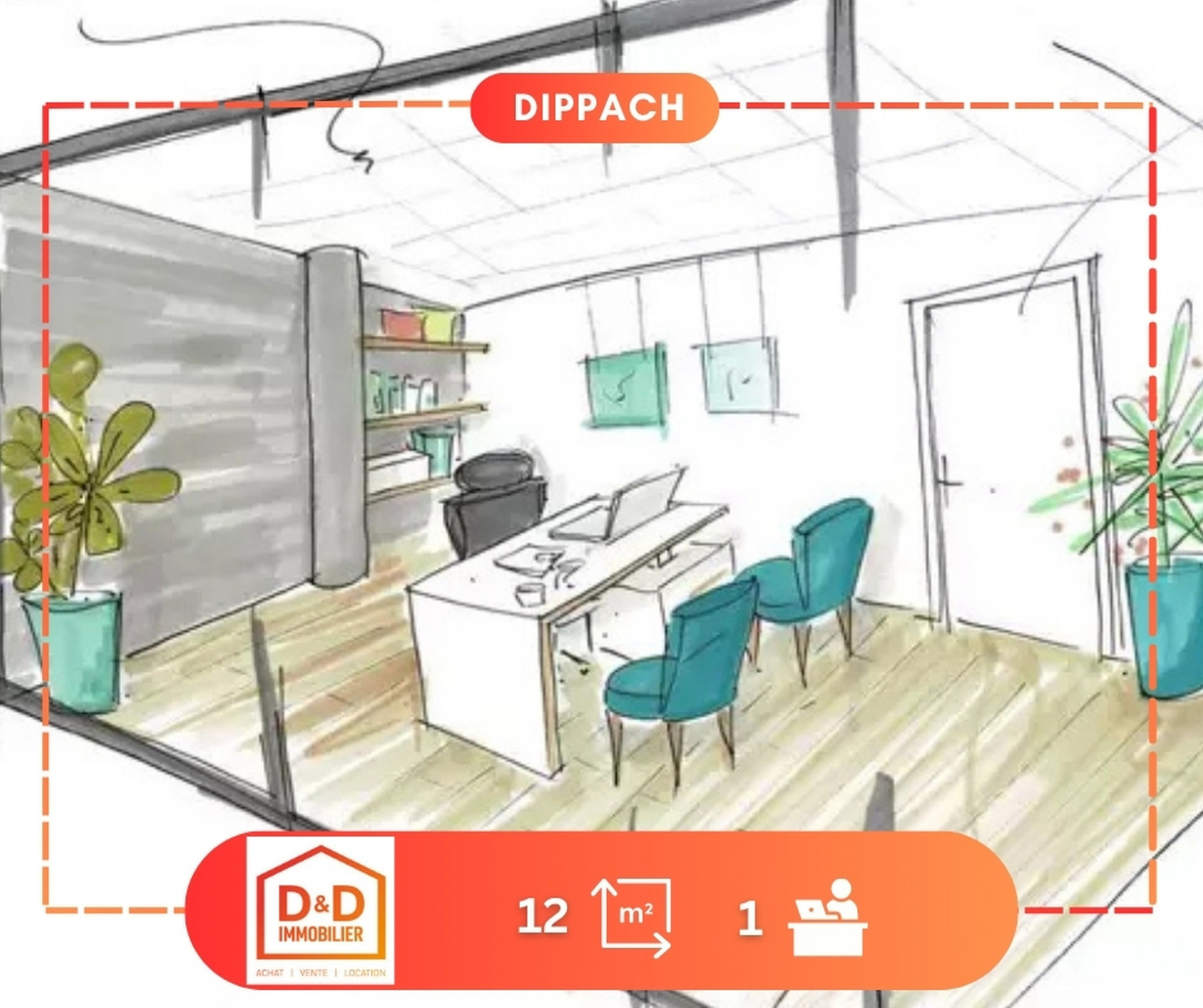D&D Immobilier vous propose en exclusivité ce bureau lumineux de 12 m², idéal pour un professionnel indépendant ou une petite activité nécessitant un espace de travail confortable, fonctionnel et bien situé.