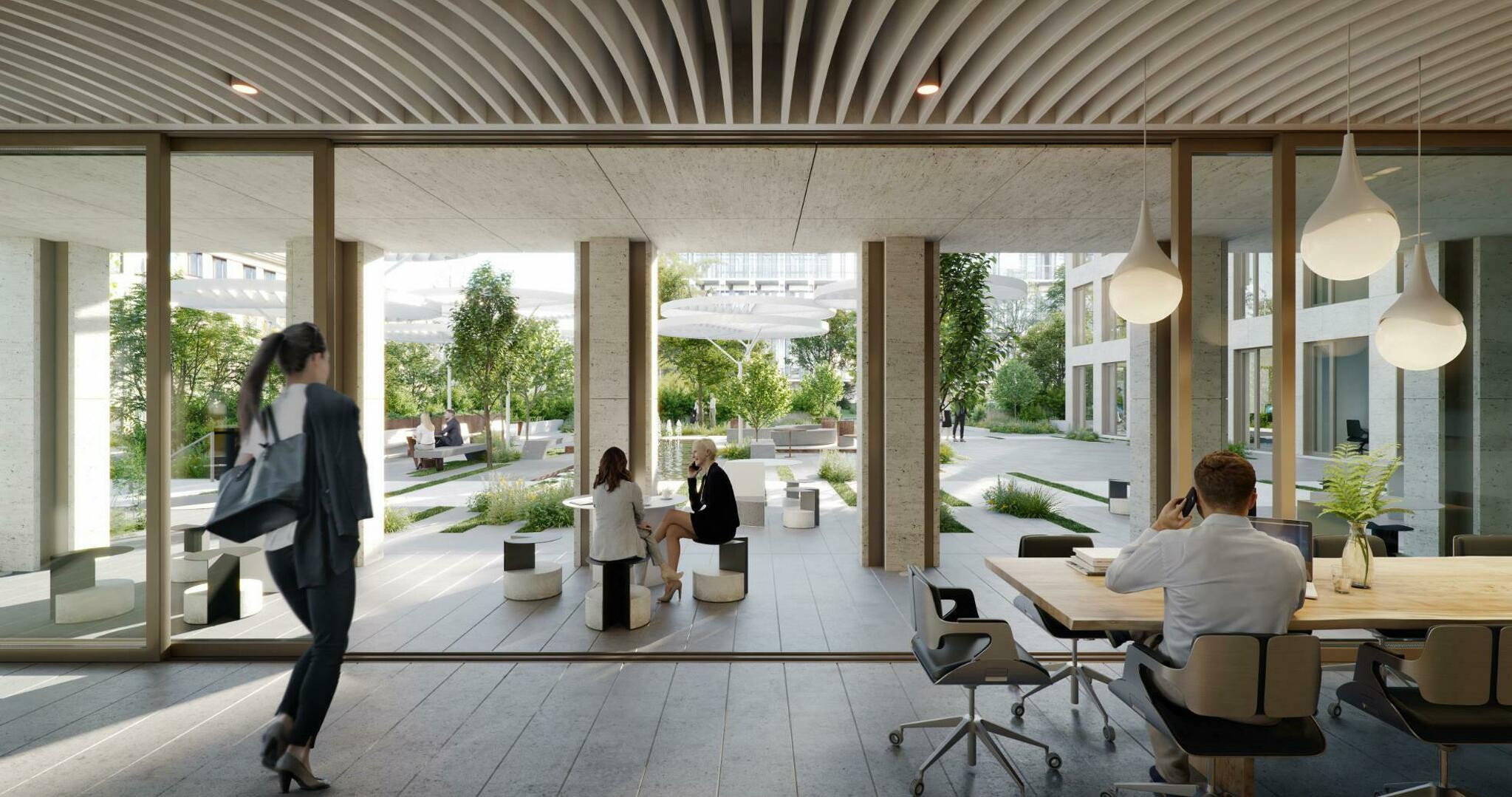 Occupants will have free access to a fitness room, an auditorium, a barista corner and a fully landscaped outdoor green space of over 550m². With its BREEAM Excellent, Well Gold and DGNB certifications, the building is ideally suited to the new environmental expectations of major corporations.