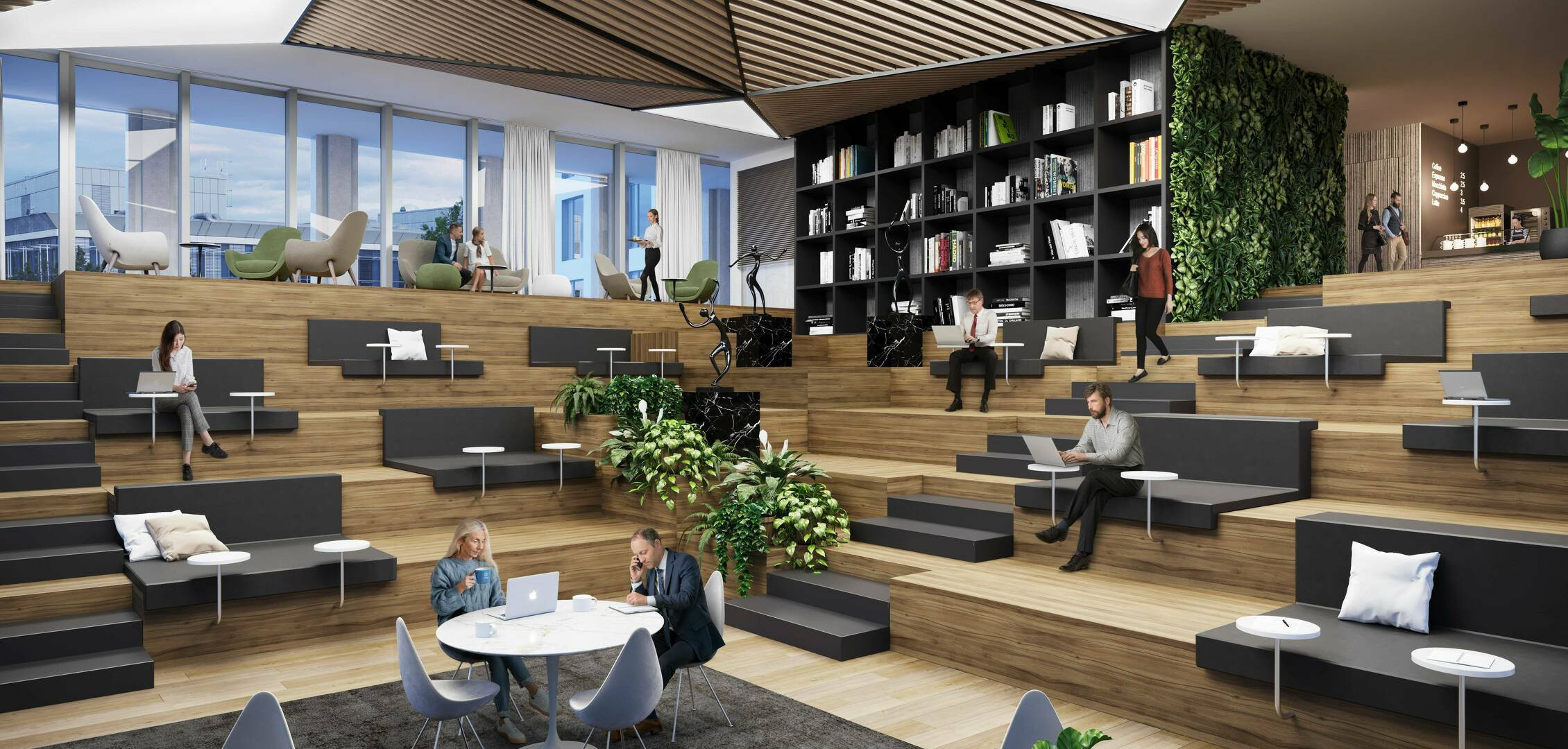 En effet, les occupants auront librement accès à une salle de fitness, un auditorium, un barista corner et un espace vert extérieur entièrement aménagée de plus de 550m². De par ses certifications BREEAM Excellent, Well Gold et DGNB, l'immeuble répond idéalement aux nouvelles attentes environnementales des grands corporates.