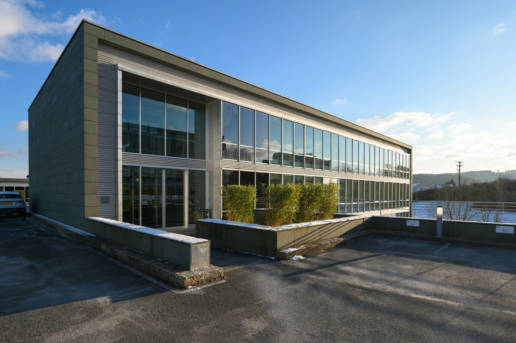 L'E-BUILDING, situé au 6 Rue Gabriel Lippmann à Munsbach, est un bâtiment de bureaux existant de 10 560 m² répartis sur six niveaux, actuellement disponible à la location. Ce complexe emblématique, construit entre 2002 et 2005, bénéficie d'une certification BREEAM et s'intègre dans le parc d'affaires Syrdall. Son architecture en forme de « E » et ses espaces modulables en font une solution flexible pour les entreprises recherchant visibilité et professionnalisme.