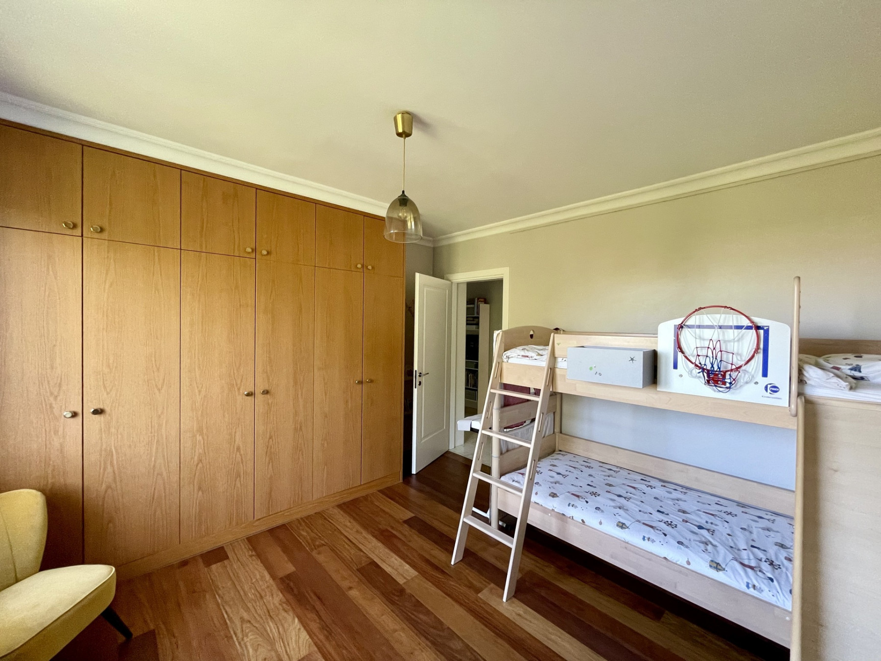 Renovated in 2019, the apartment has been modernized with top-of-the-range finishes: exotic wood parquet flooring adorns the bedrooms, the bathroom has been completely redone with an integrated laundry area, and the walnut kitchen, equipped with a central island/bar, features sliding glass and walnut doors allowing it to be closed as you wish. Triple-glazed windows ensure optimum thermal comfort.