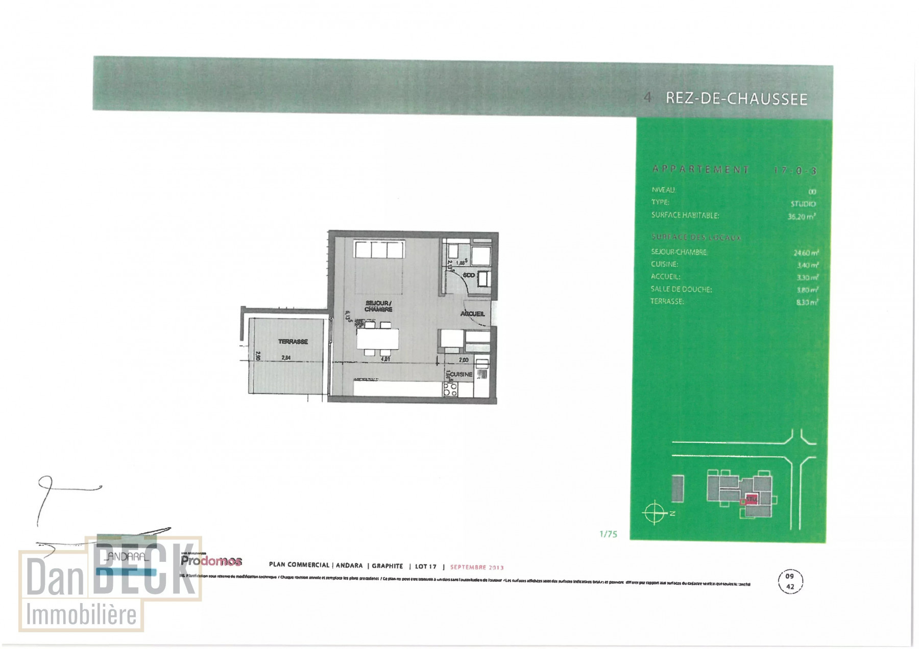 Le bien se trouve au rez-de-chaussée, offrant un accès facile et pratique. L’appartement se compose d’un hall d’entrée avec armoire intégrée, d’une salle de douche, d’une cuisine entièrement équipée, ainsi que d’un séjour lumineux bénéficiant d’un accès direct à une terrasse privée, parfaite pour profiter des beaux jours.