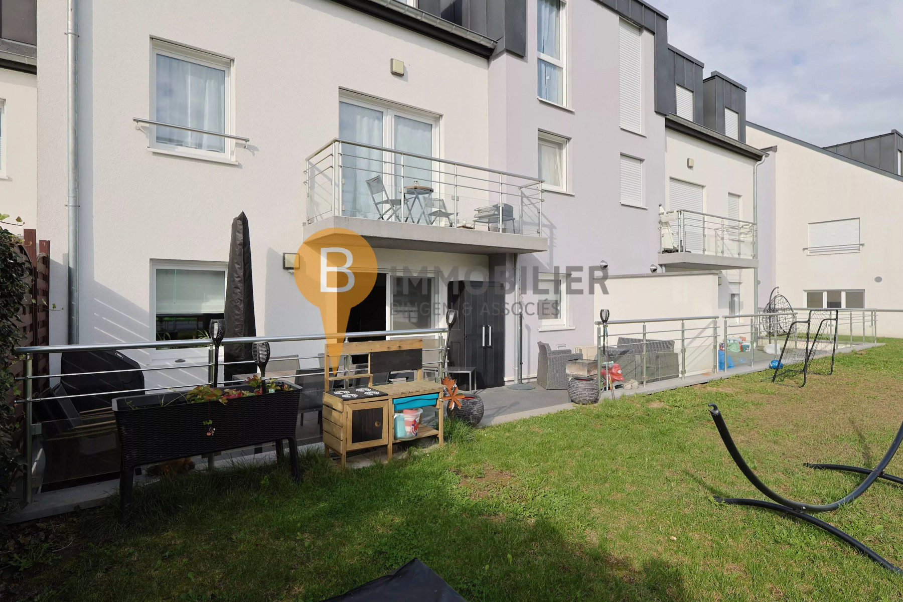 Rez-de-chaussée: Hall d’entrée, WC séparé, trois chambre à coucher (10,4m², 10,5m² & 16,3m²), une salle de douche (7,92m²) avec WC, double lavabo, & douche italienne et un grand séjour avec cuisine équipée ouverte (44m²) – réfrigérateur avec congélateur intégré, four, microonde, lave-vaisselle, plaques électriques – donnant accès à la terrasse (27m² - Orientation Sud) et jardin commun.