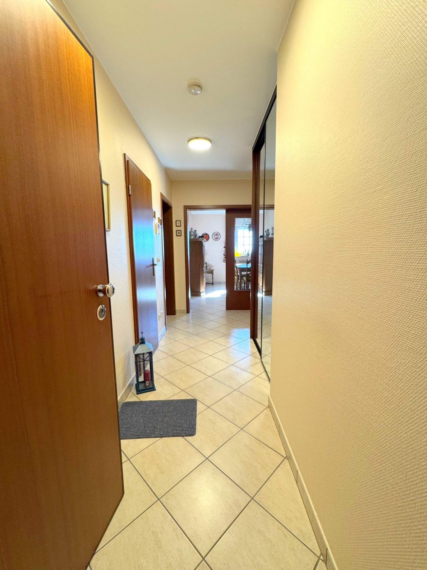 Hall d'entrée avec armoire encastrée, grand living/salle à manger, cuisine équipée avec accès à la terrasse, hall de nuit, 2 chambres à coucher , 1 salle de bain + WC, 1 WC séparé, terrasse, cave, un emplacement intérieur et extérieur.