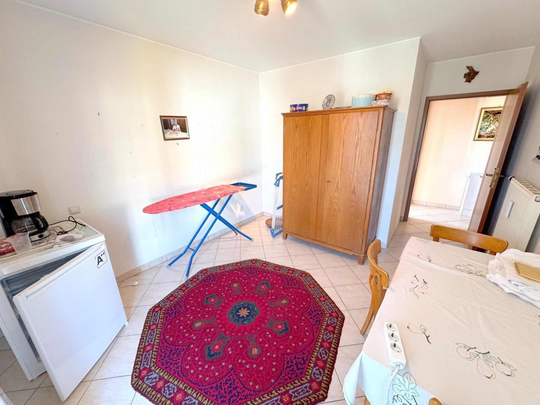 Entrance hall with built-in cupboard, large living/dining room, fitted kitchen with access to terrace, night hall, 2 bedrooms, 1 bathroom + WC, 1 separate WC, terrace, cellar, indoor and outdoor parking space.