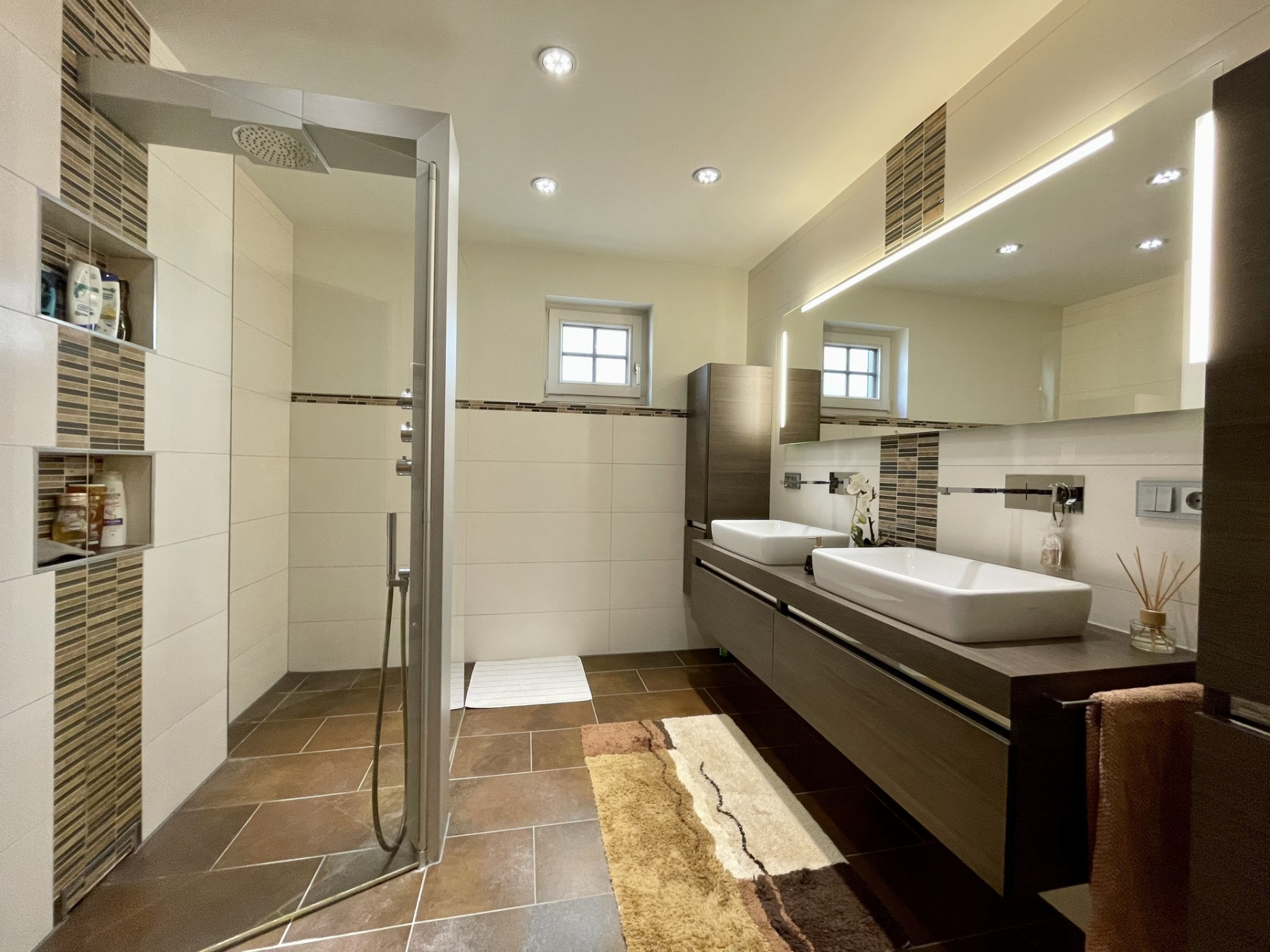 Ce niveau se complète par une chambre à coucher, une salle de douche avec double vasque et fenêtre, un WC séparé, ainsi qu'une pièce pouvant servir de bureau idéal pour le télétravail ou de petite chambre à coucher.