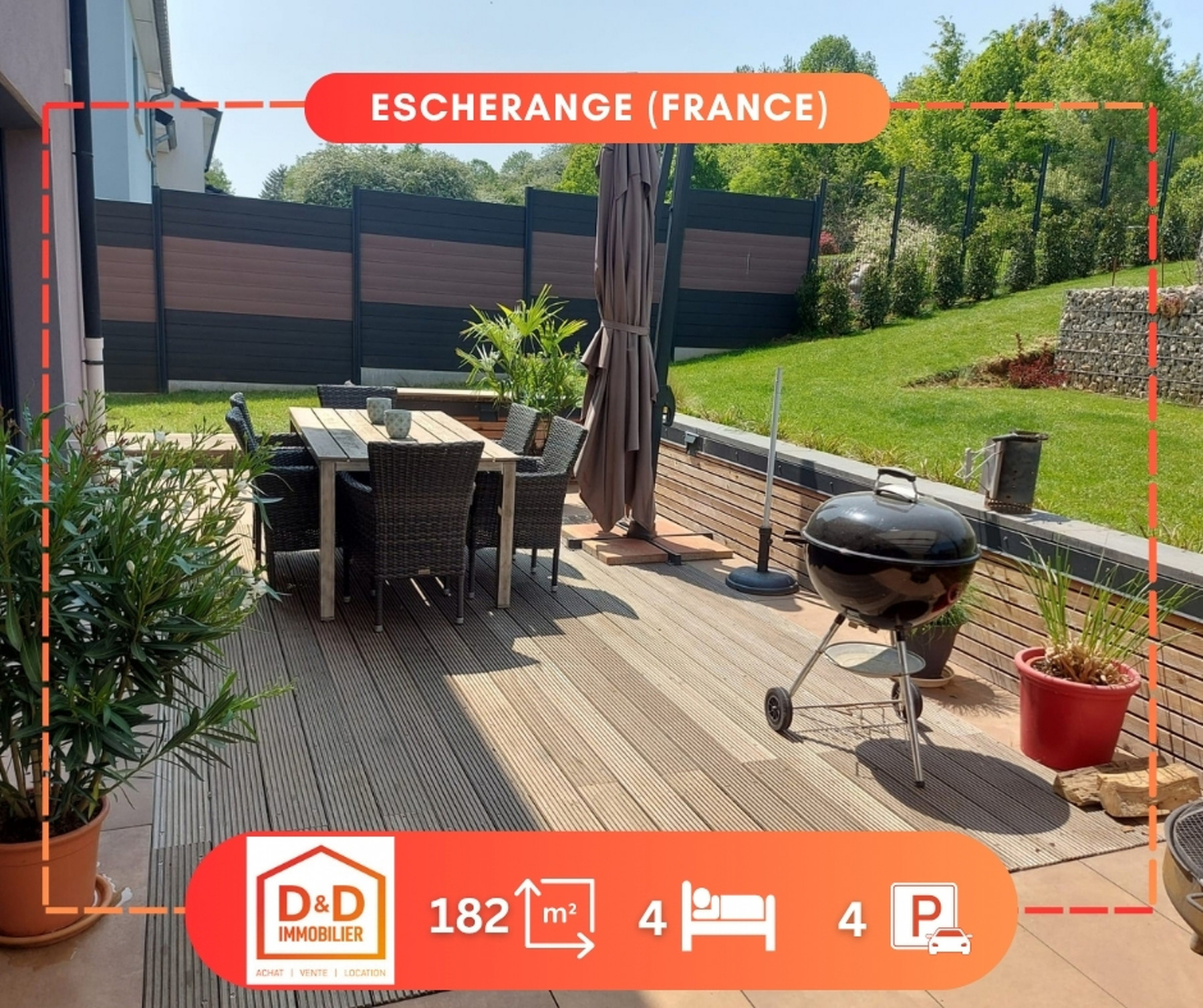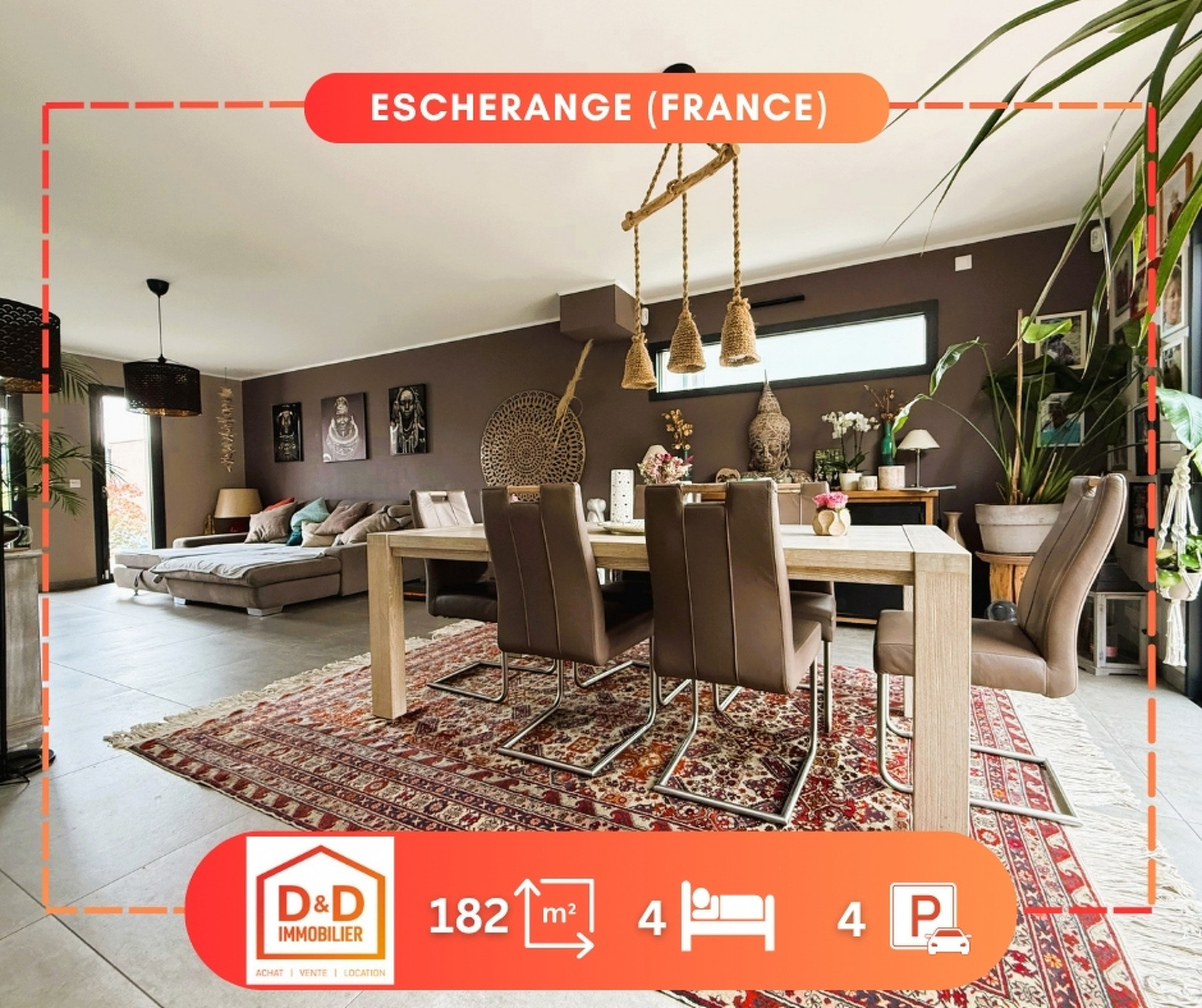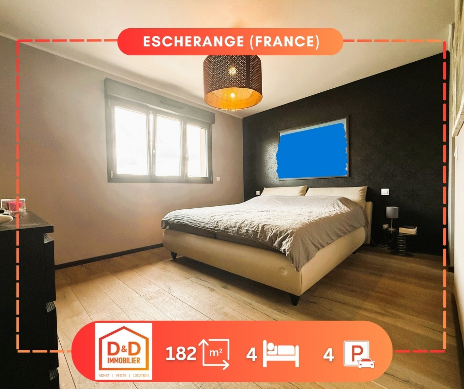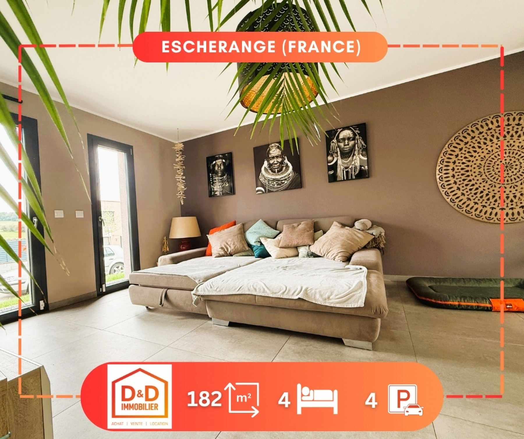 Discover this magnificent house located in Escherange, France, just a few minutes from the Luxembourg border. With 182 m² of living space on two levels and a 4 ares garden to the rear, it offers a spacious, green living environment, ideal for a family.