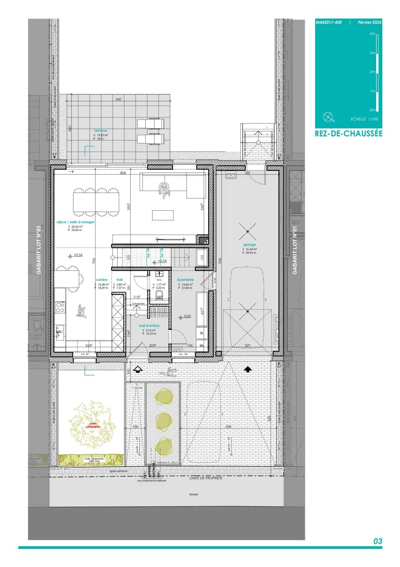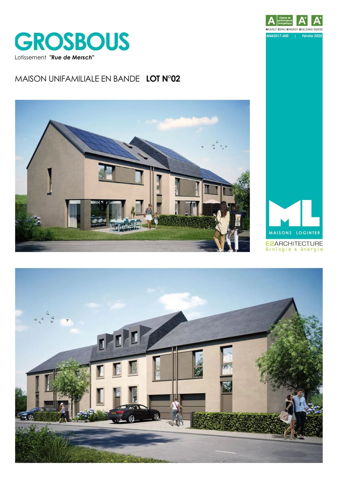 LOT 02: maison unifamiliale en bande sur un terrain de 3,06 ares avec une surface habitable de +/- 190 m2 et une surface totale de +/-330m2 comprenant: