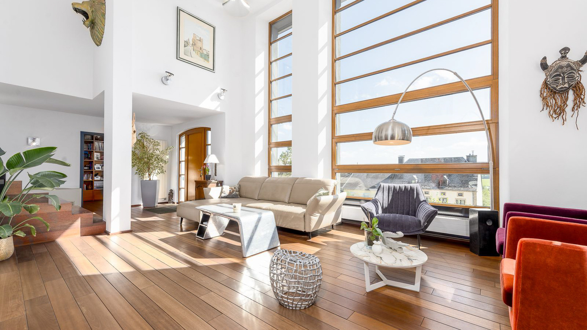 Propriété exceptionnellement lumineuse, offrant des grands espaces et des belles vues dégagées sur la vallée, ainsi qu'un grand jardin hors du commun. Idéalement situé dans un voisinage calme, à proximité des commerces, du centre-ville, du Kirchberg, de Gasperich et des principaux axes routiers. Accès à quelques mètres de l'arrêt de bus desservant la Gare centrale et le Kirchberg