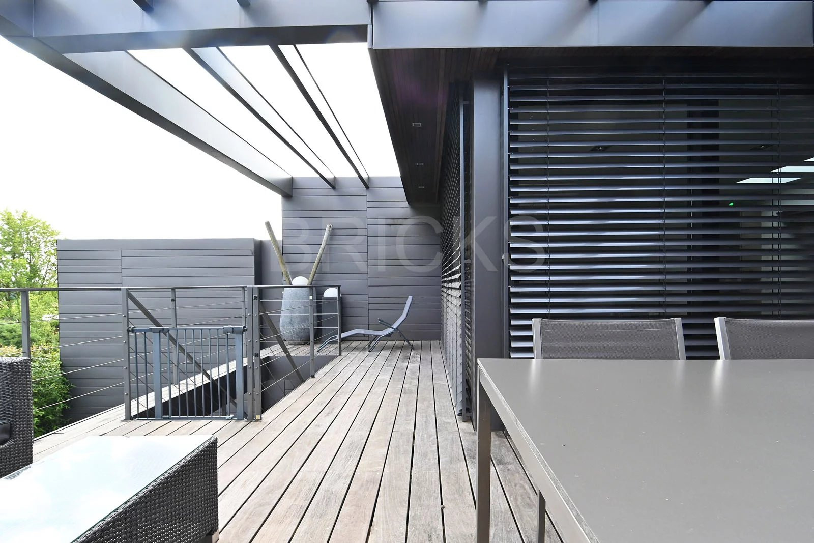 Elle offre des volumes lumineux idéalement répartis sur 194 m² de surface habitable (247 m² de surface totale) et profite d’un agréable terrain de 5,76 ares avec une belle terrasse et un vaste jardin.