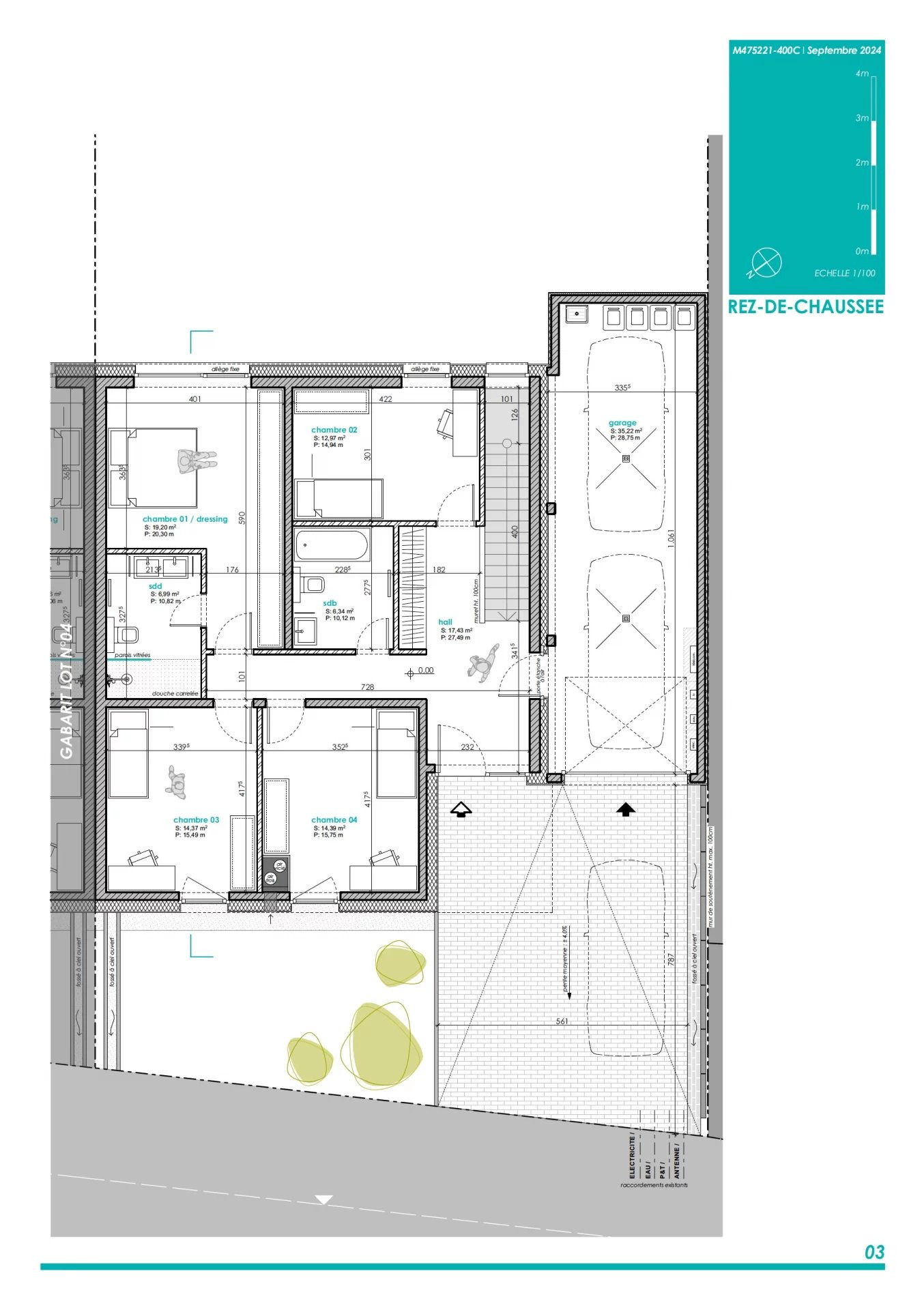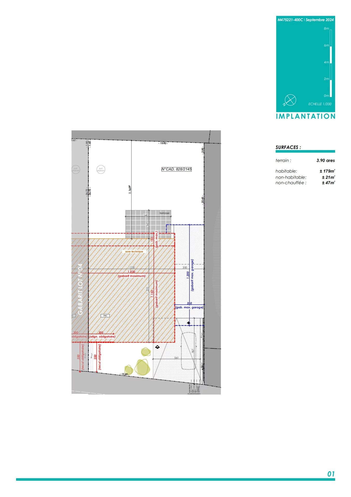 LOT 3: Magnifique maison jumelée sur un terrain de 3,90 ares avec une surface habitable de +/- 179 m2 et une surface totale de +/-200m2 comprenant: