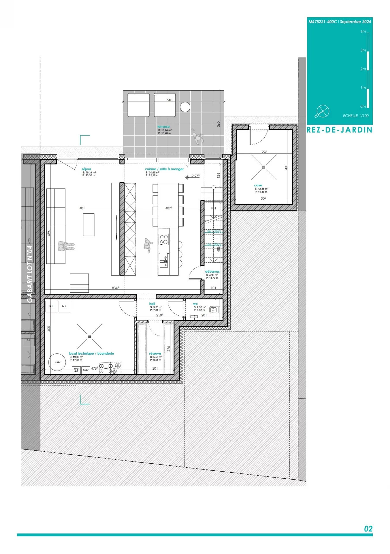 - cuisine spacieuse avec accès vers la terrasse de 19,24m2 et le jardin